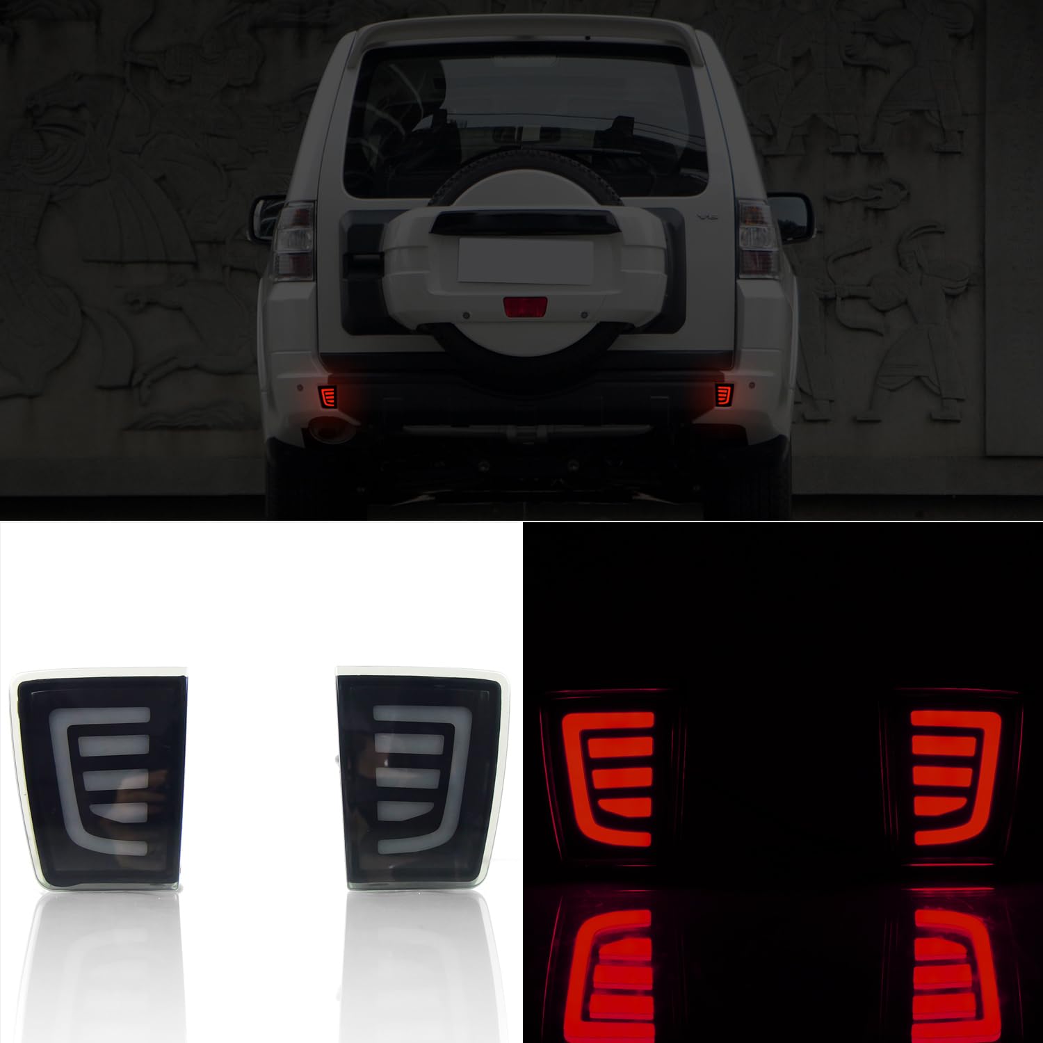 HIGH FLYING for Mitsubishi Pajero V93 2007-2021 Car Exterior Accessories Tailgate Rear Brake Signal Light Sequential Dynamic LED Light ABS 2pcs (Black Lens)