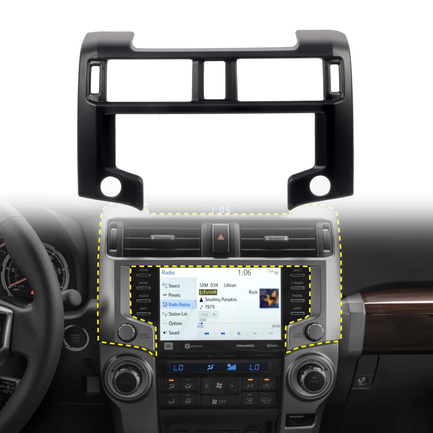 HIGH FLYING for Toyota 4Runner 2020 2021 2022 2023 2024 Car Accessories Center Console Navigation GPS Frame Cover Trim Matte Black 1pc